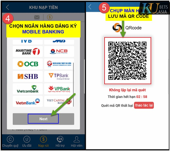- Nạp tiền Kubet88 từ ngân hàng điện tử: