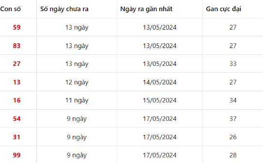 | Cặp lô | Số Lượng Cầu Báo | Khả Năng Về |