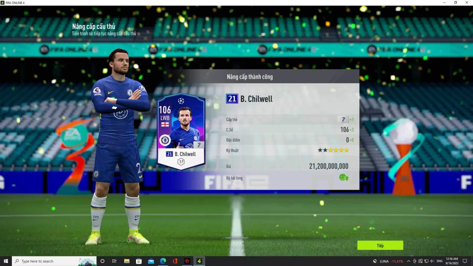 - Nâng cấp thẻ: Tăng cấp các cầu thủ chủ chốt lên +5 hoặc +8 để cải thiện toàn diện chỉ số.